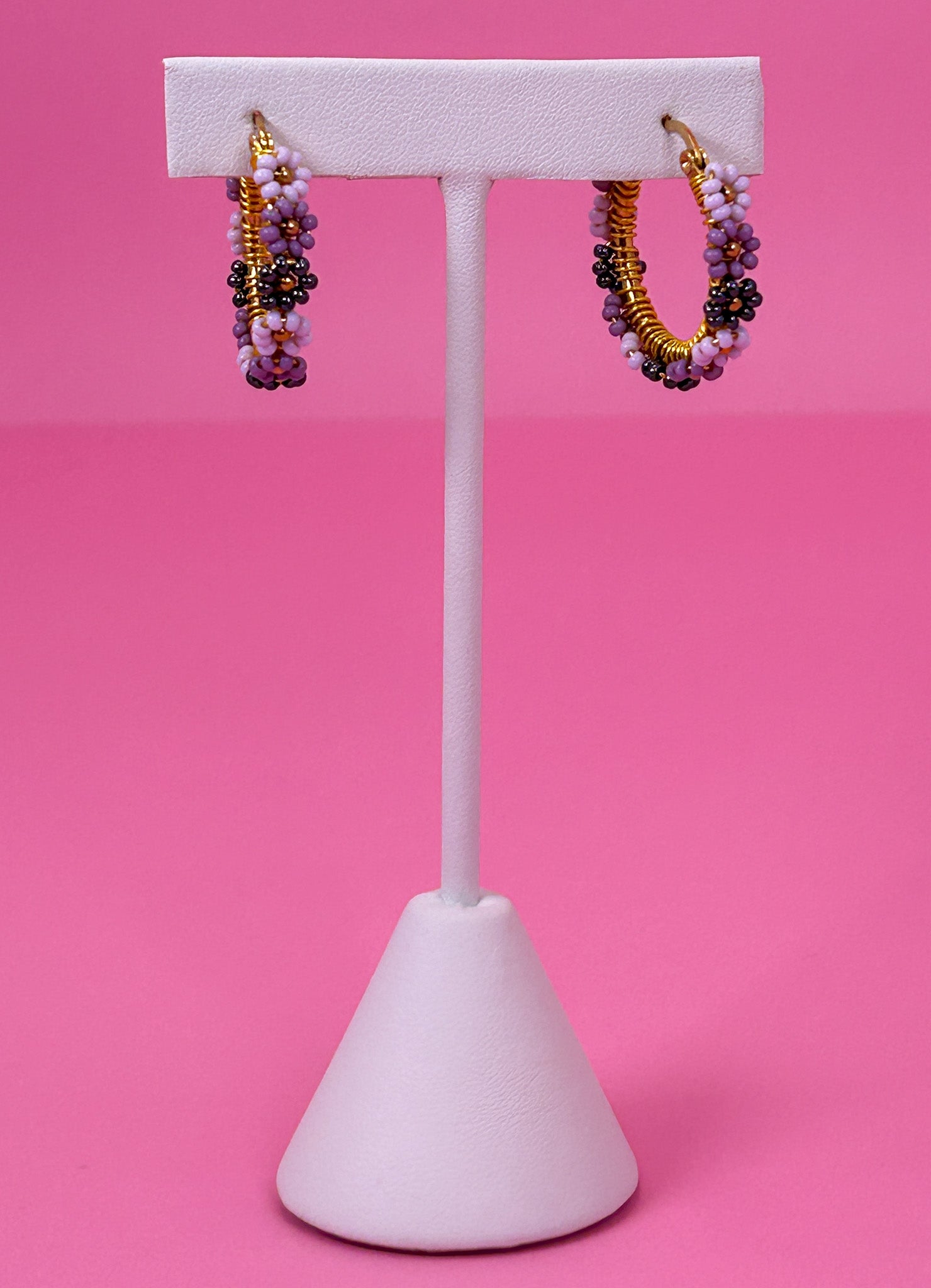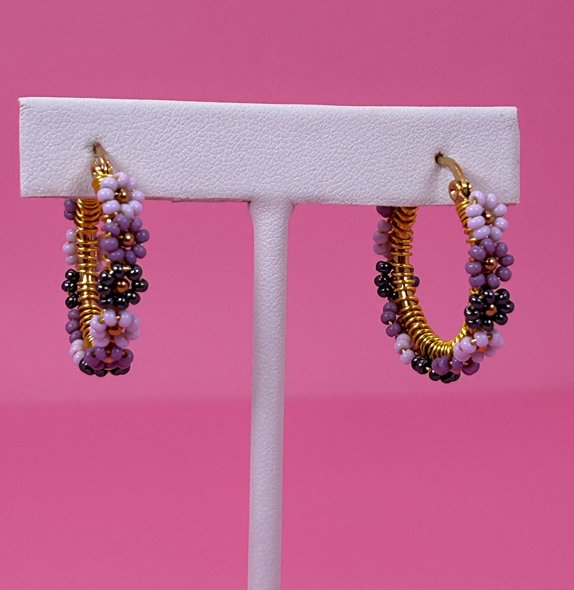 Lavender Mix Daisy Hoop Earrings