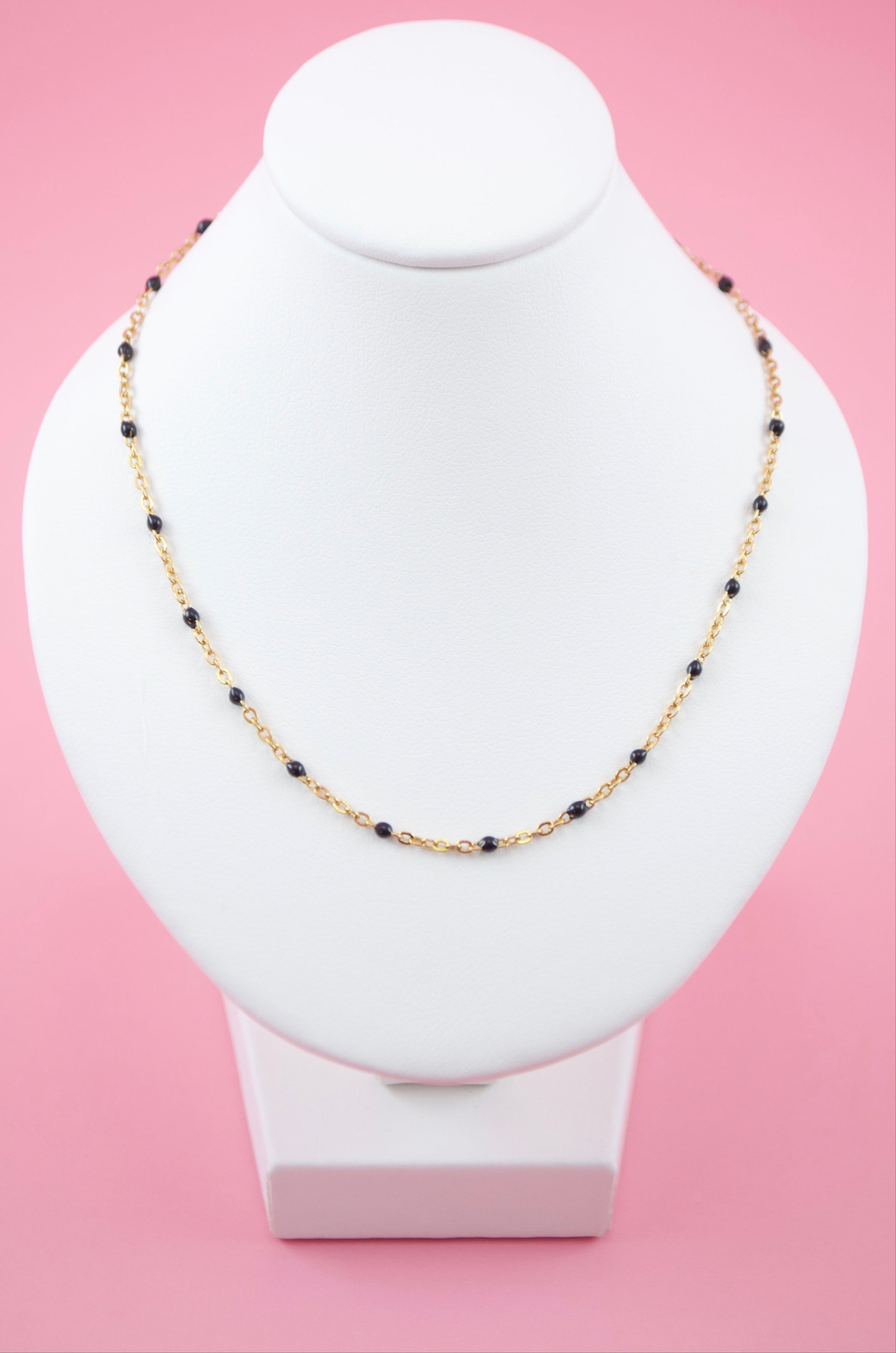 A smooth blend of black enamel and sleek links, this necklace brings subtle edge and effortless style to any outfit.