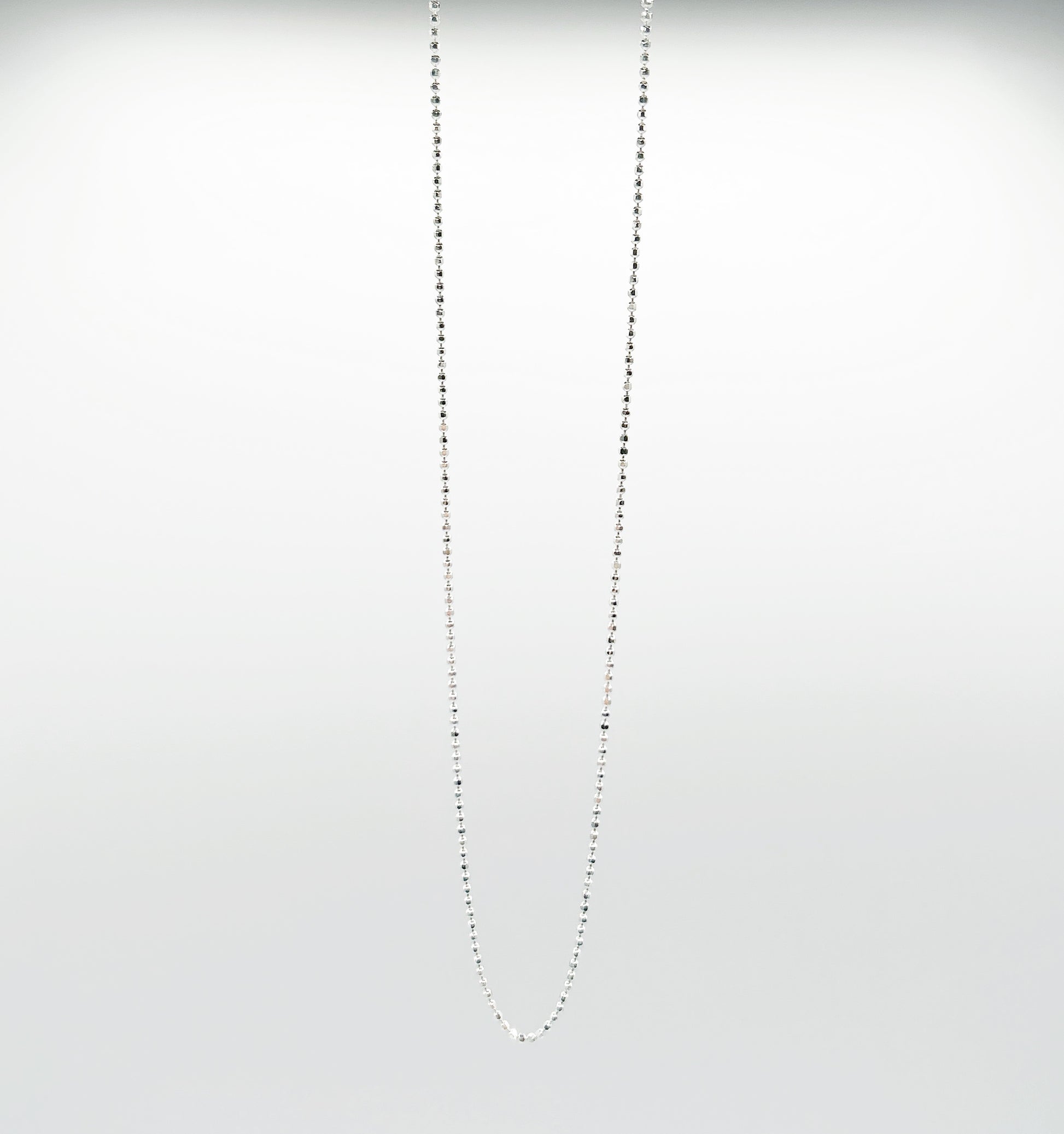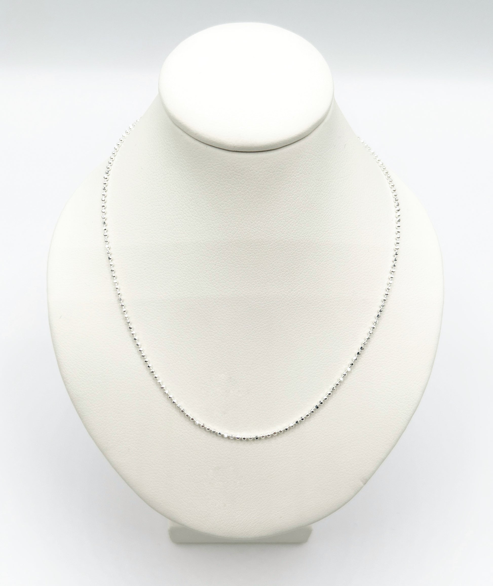 This sterling silver necklace features diamond-cut ball beads that catch the light beautifully, adding a subtle sparkle to any look. Timeless and versatile, it’s perfect for everyday wear or layering with your favorite pieces for a refined, modern style.